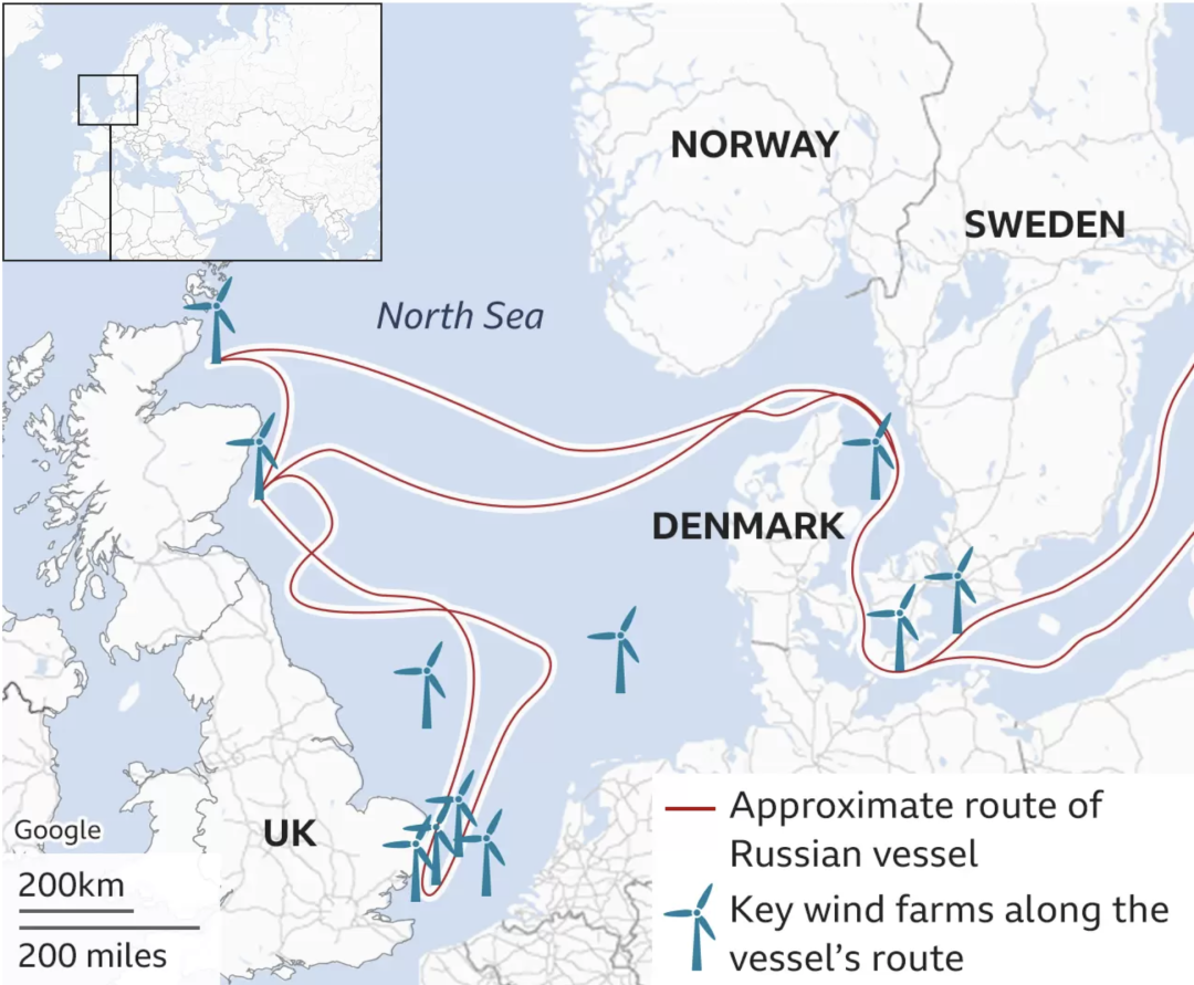Росія має в Північному морі флот суден, замаскованих під рибальські траулери, та дослідницькі судна, якими таємно збирає дані про критичну інфраструктуру під водою.