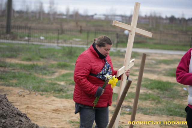 Кілька хвилин ми отак і стояли біля моргу, обійнявшись. Дві українські жінки. Мешканка Бучі, яка пережила окупацію, і я, журналістка з Луцька. Наталія плакала... Згодом, заспокоївшись, вона із жовтими нарцисами в руках пішла нести ще один важкий хрест – ховати рідного дядька.«Чоловіка на велосипеді із відомого фото», якого прицільно вбили окупанти... Можливо, за синьо-жовту стрічку, пов’язану на передпліччі. А може, й задля розваги.