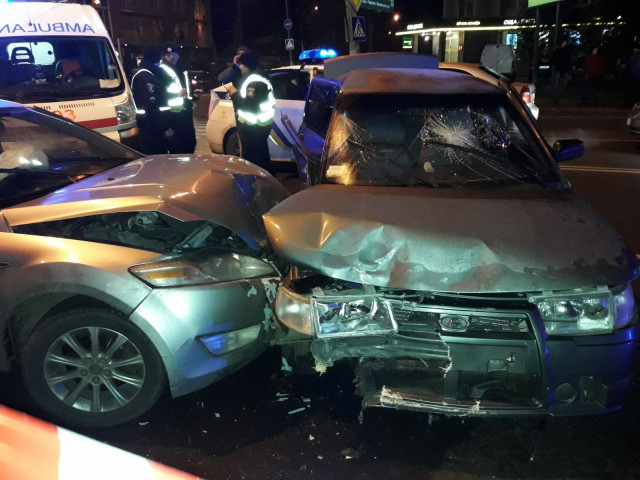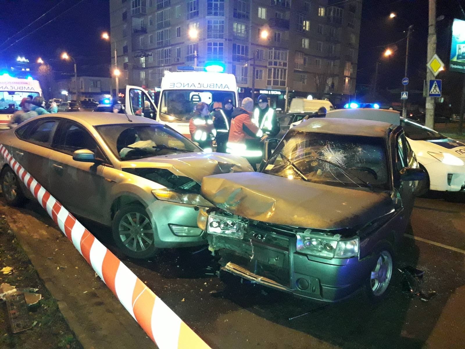 Як повідомляє Конкурент, в аварії було третє авто. Водій ВАЗ не надав перевагу у русі і отримав удар в бокову частину від Ford. Третя автівка – BMW – внаслідок аварії виїхала на пішохідну частину.