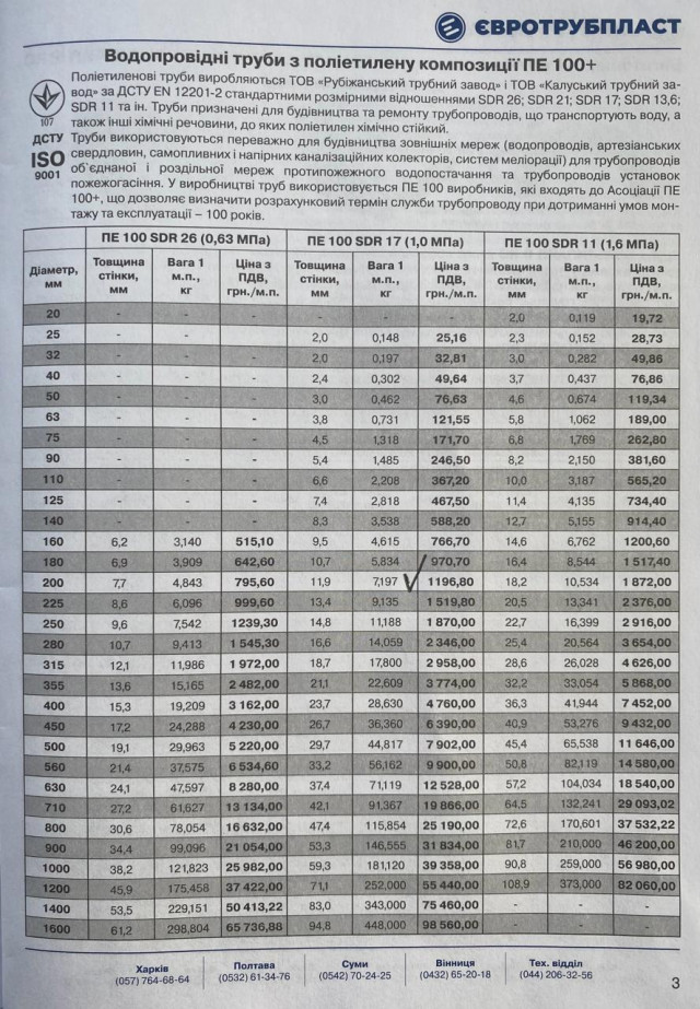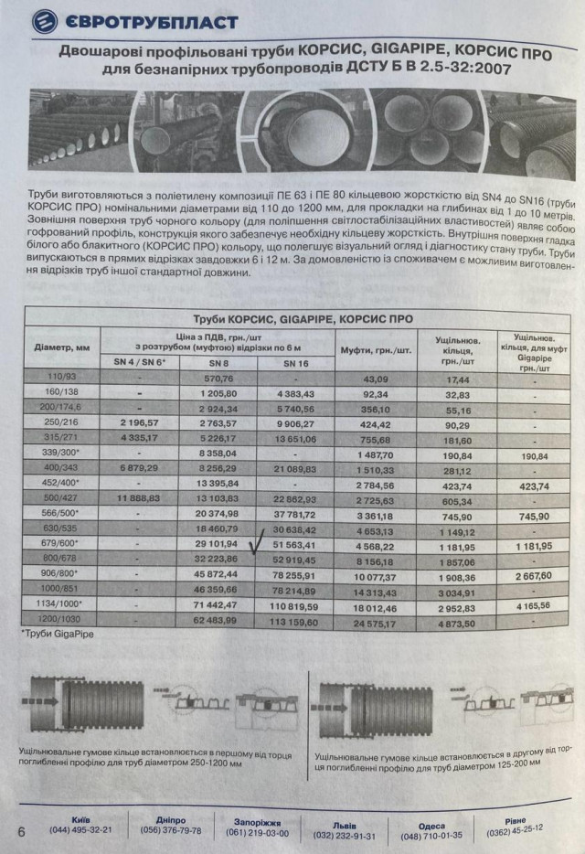 Для прикладу у КП наводять прайс цін одного з провідних українських виробників щодо вартості труб, які будуть використанні при капітальному ремонті (для зручності встановлена відмітка).