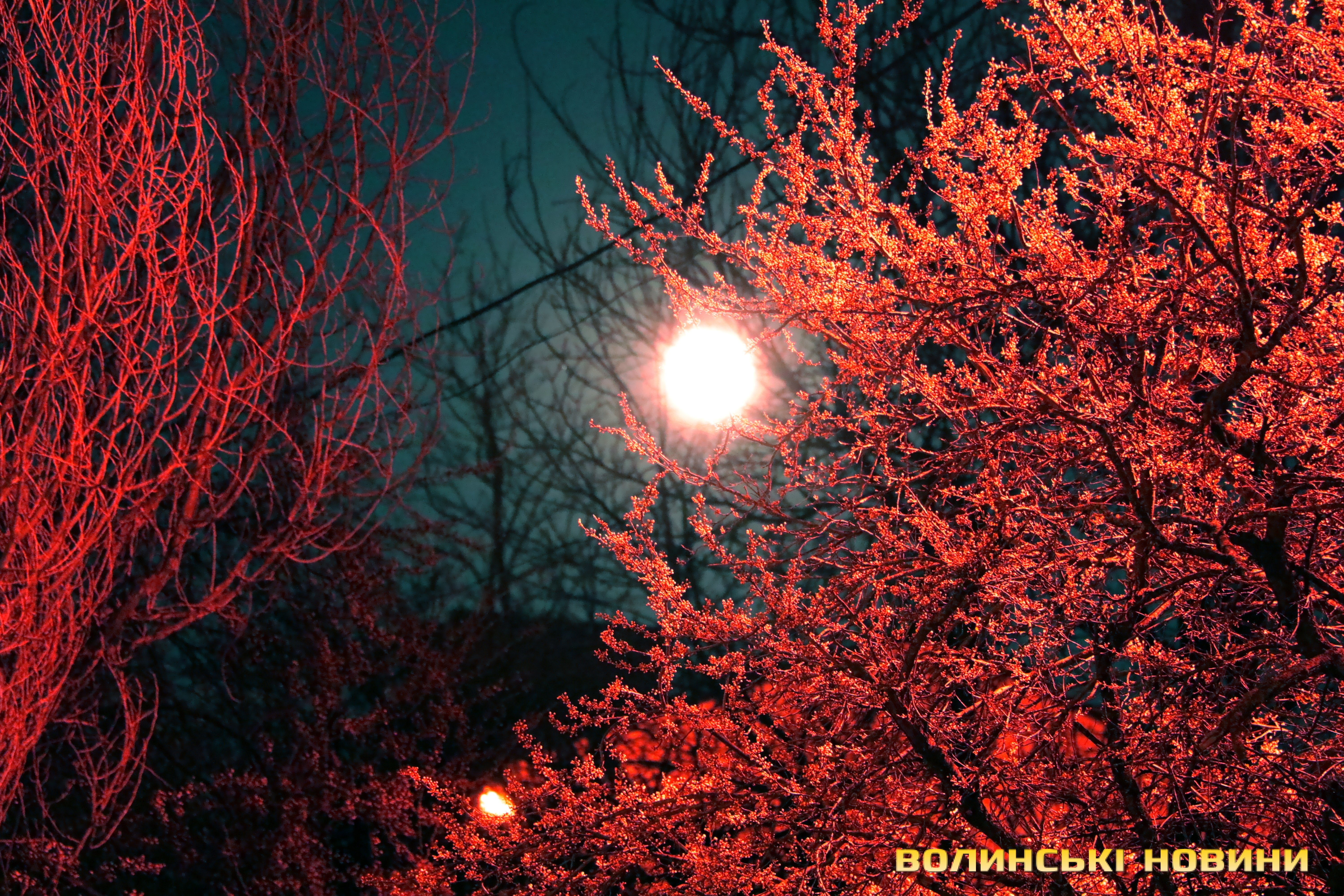 Рожевий Місяць у мереживі з квітів: як виглядала перша суперповня 2021 у луцькому небі. Фото