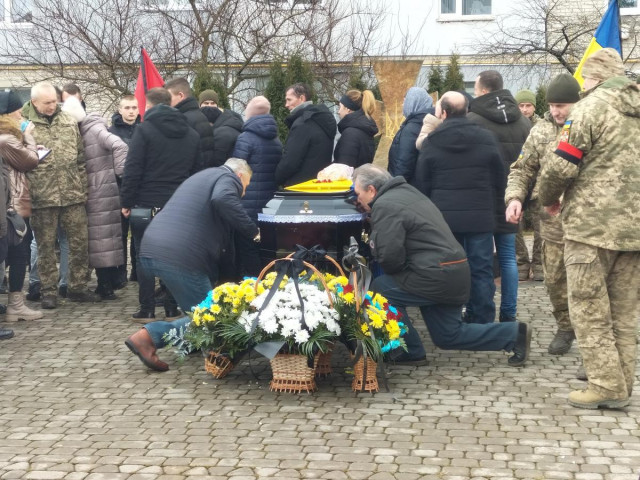 Згодом велелюдною процесією під тужливі мелодії військового оркестру та церковні піснеспіви Олега Васевича провели до місця його останнього спочинку – на Алею Слави місцевого кладовища.