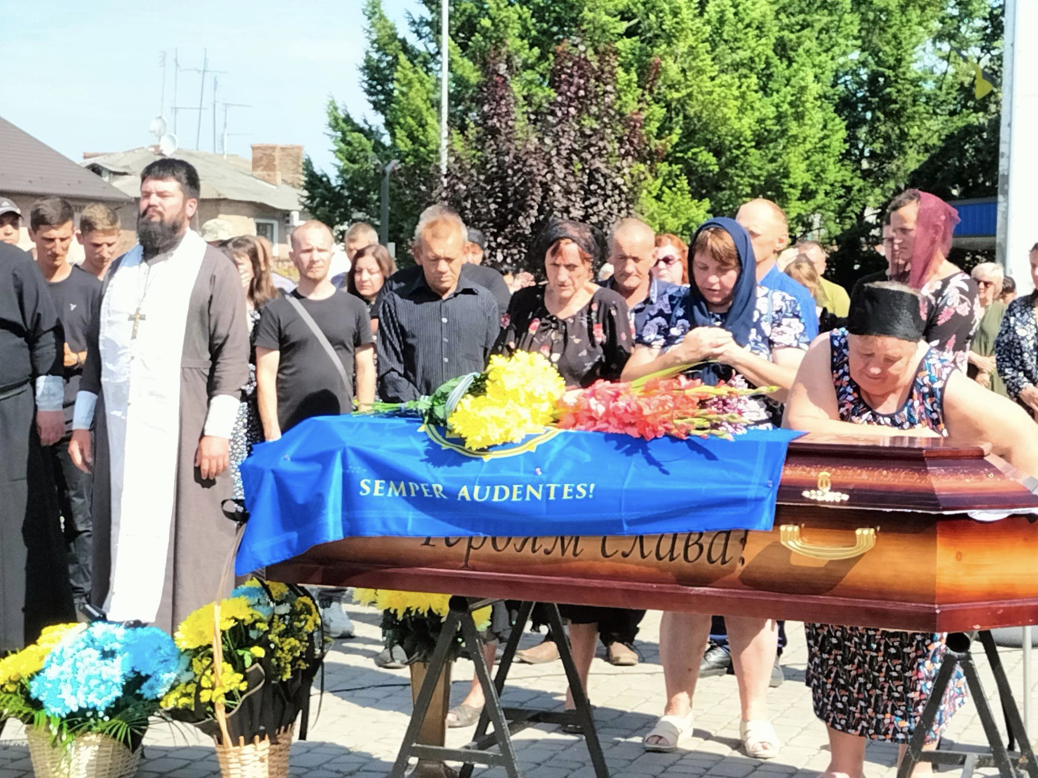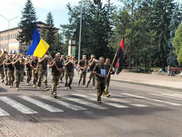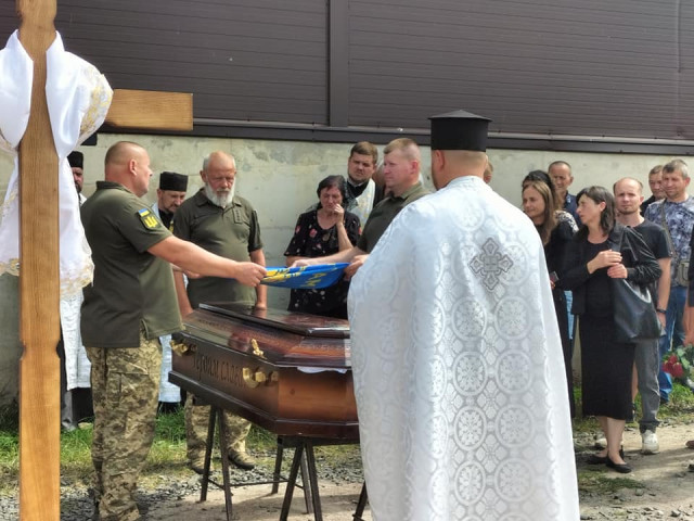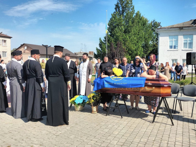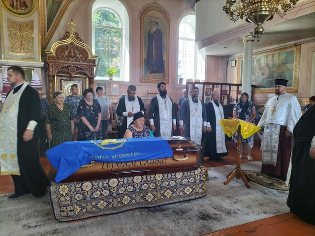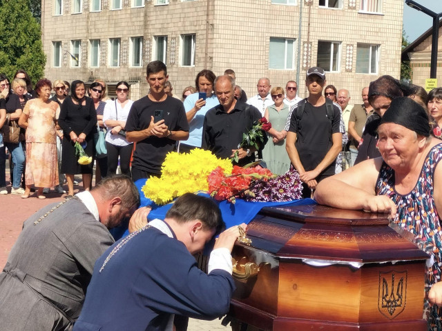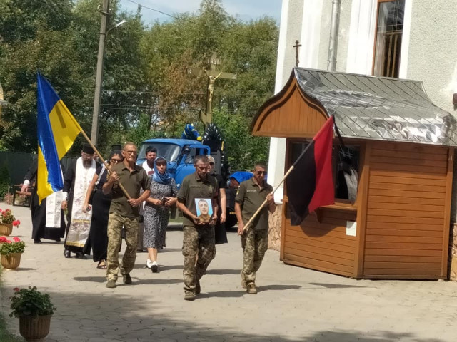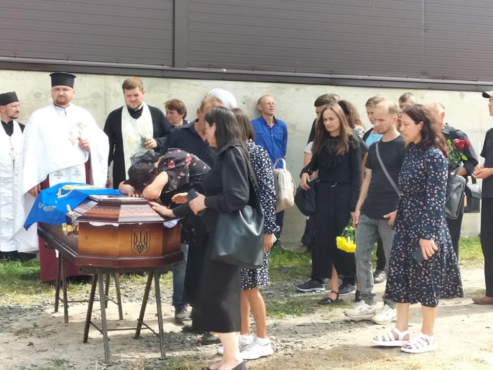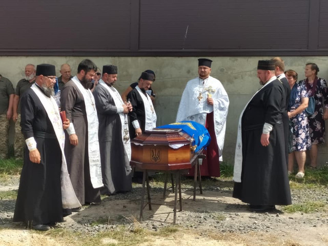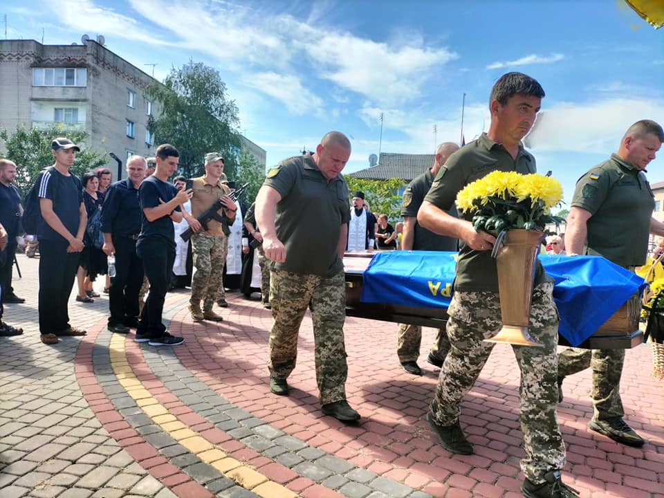 Після громадської панахиди траурною ходою під звуки військового оркестру поховальна процесія рушила до храму Архістратига Михаїла, де відспівали загиблого Героя.Після спільної молитви за невинно вбитого воїна, який захищав рідну землю від російського загарбника, тіло провадили до місця його останнього спочинку – на Алею Слави міського кладовища.Останнє прощання. Сльози, смуток і біль. Стяг, яким була вкрита домовина 33-річного Героя, військові передають неньці загиблого.