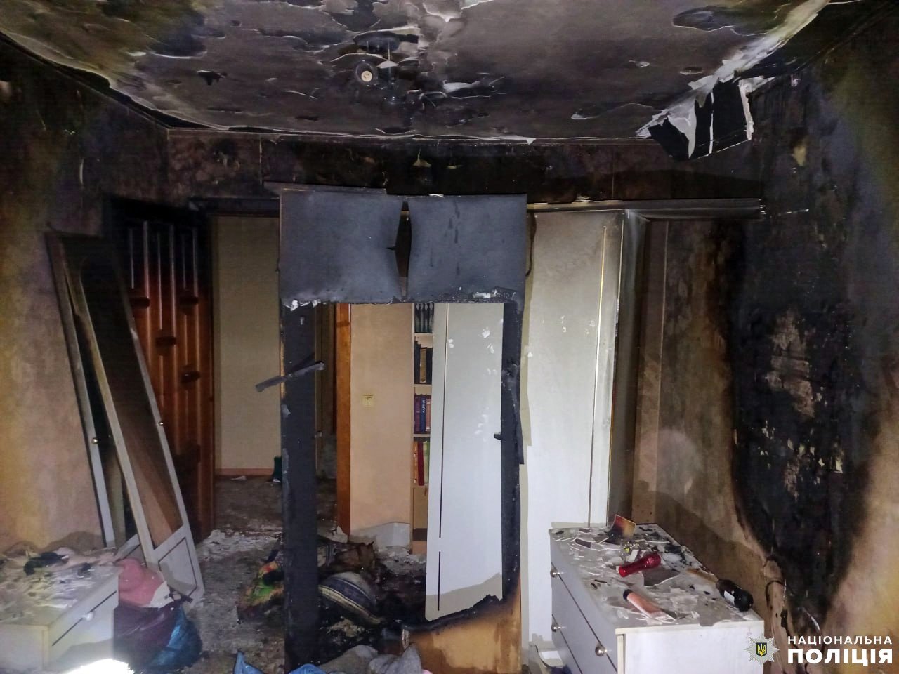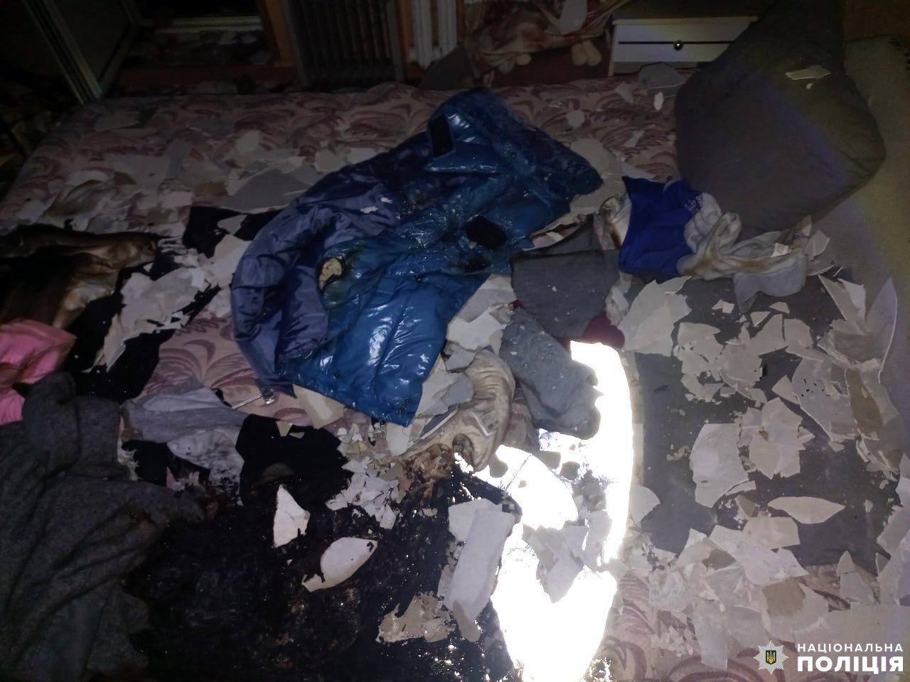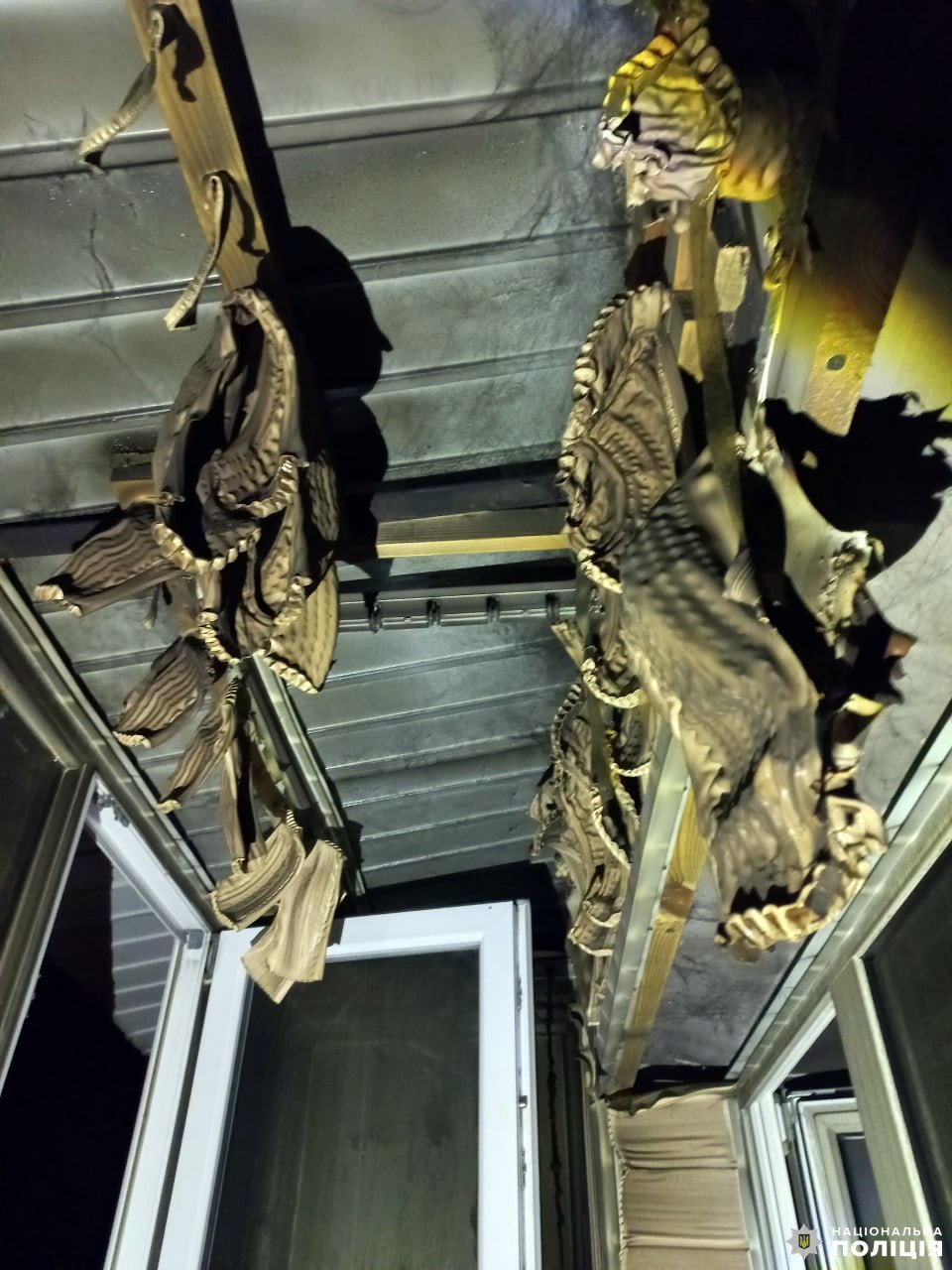 Внаслідок пожежі пошкоджено стіни, стелю спальної кімнати, балкон, а також речі домашнього вжитку.