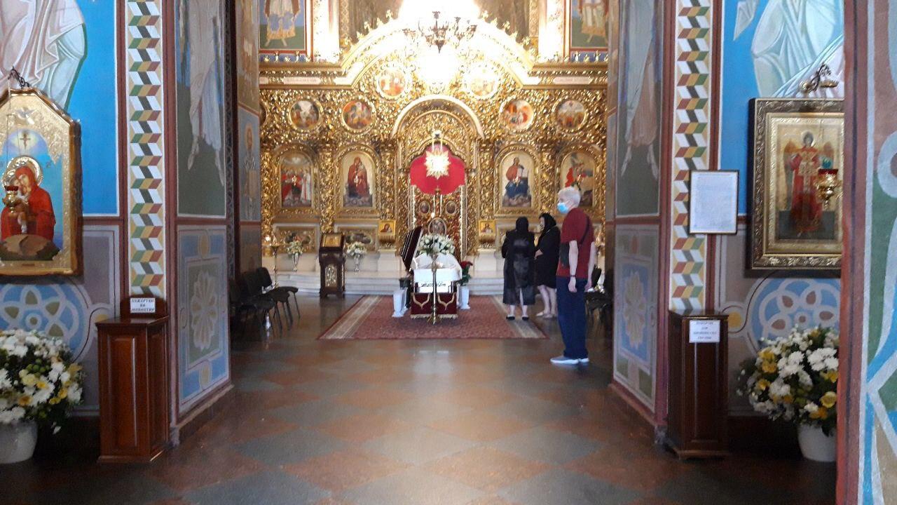 У самому храмі стоїть труна з тілом Олексія Порошенка. Біля труни постійно знаходяться дві жінки, які стежать за порядком. На територію монастиря, як і в сам храм, вхід вільний.
