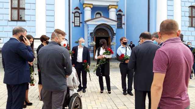 У Свято-Михайлівському монастирі сьогодні відслужать панахиду за покійним Олексієм Порошенком. Його син Петро Порошенко прибув з дружиною до храму близько 10:20.