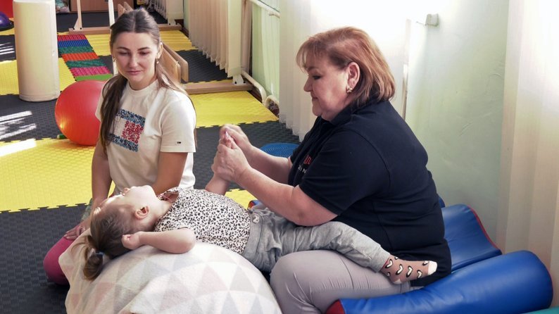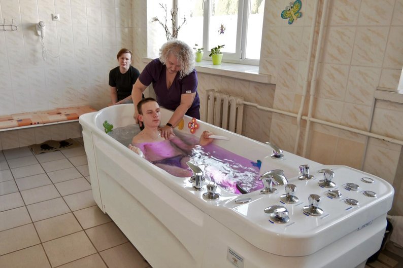 «Став вирівнюватися, бо у нас обірвана зв’язка та, що тримає голову. Ми де тільки не їздили, а найбільше сподобалось тут. Він не міг лягти на спину. Йому зараз вирівняли, він став лягати сам і став витягатися хлопчик. У нього була травма», – сказала жінка.Реабілітологиня Тамара Герасимик, яка працює в закладі майже 30 років, розповіла: результати роботи в дітей дають зрозуміти, що праця приносить користь.