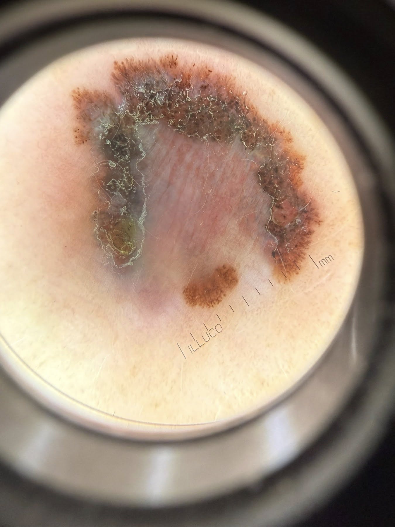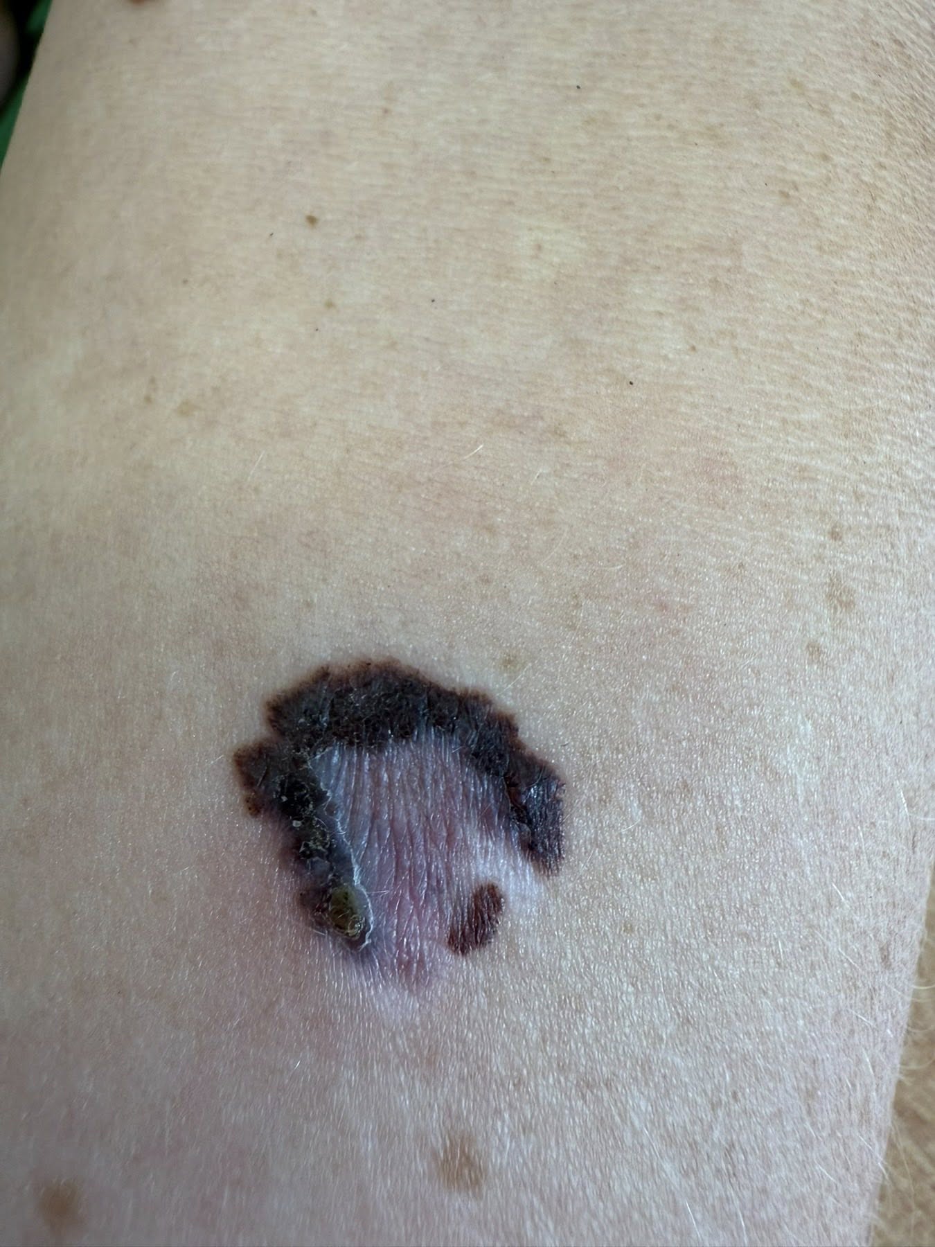 Найстрашніша знахідка лікарки – меланома на передпліччі у 40-річної пацієнтки (на фото). Як розповіла сама жінка, меланома розвивалася щонайменше рік, утім досі пацієнтка жодного разу не показувала новоутворення лікарям.Лікарі вкотре наголошують: меланома – найбільш агресивне злоякісне новоутворення шкіри. Тоді як раки шкіри (плоскоклітинний та базальноклітинний) мають більш позитивні прогнози щодо лікування та рідко дають метастази, меланома може дуже швидко проникати в глибокі шари шкіри, потрапити в лімфу або кров і дати метастази навіть при маленьких розмірах. Саме тому родимки, які змінили форму чи нові родимки, які відрізняються від інших, варто періодично перевіряти у дерматолога.