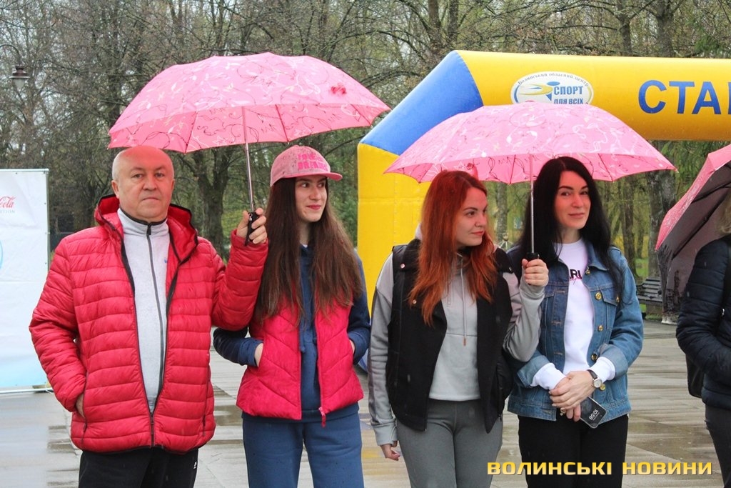 До офіційного відкриття забігу також долучилися перший заступник відділення НОК у Волинській області, начальник Волинського регіонального центру з фізичної культури і спорту осіб з інвалідністю «Інваспорт», депутат обласної ради Віктор Галан-Влащук, директор департаменту молоді та спорту Луцької міської ради Володимир Захожий, директор Волинського обласного центру фізичного здоров’я населення «Спорт для всіх» Олександр Хриплюк, директор Західного центру олімпійської підготовки Олег Вегнер, начальник Волинського обласного відділення (філії) Комітету з фізичного виховання та спорту Міністерства освіти і науки України Олександр Монахін, ректор приватного вищого навчального закладу “Академія рекреаційних технологій і права” Людмила Стасюк, ректор Луцького національного технічного університету Ірина Вахович, ректор Волинського національного університету імені Лесі Українки Анатолій Цьось, в. о. ректора Волинського медичного інституту Тетяна Пастрик, ректор Луцького педколеджу Петро Бойчук, директор Луцького фахового коледжу рекреаційних технологій і права Юліан Теранчук, голова ГО «Центр освіти «Університет третього віку» Оксана Степанюк.Читати ще: «Місцеві дівчата не дали опустити рук»: історія тренерки-переселенки з Донеччини, яка знайшла прихисток у Любешеві