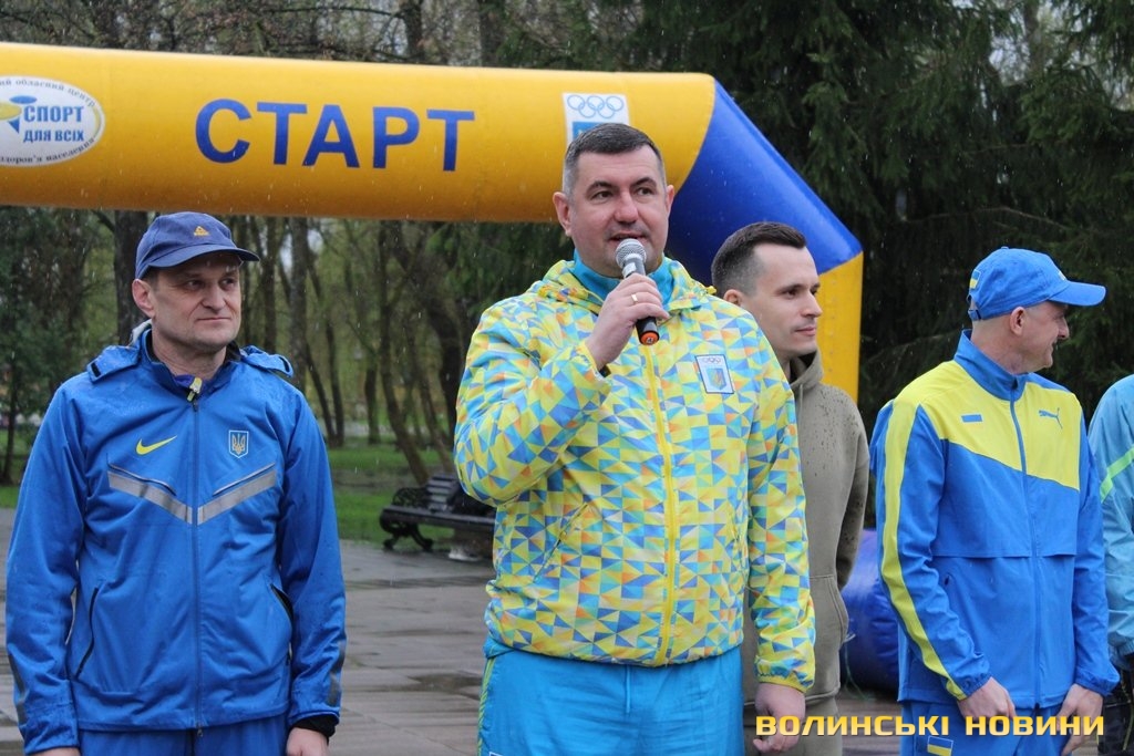 Перед початком заходу голова Волинської обласної ради Григорій Недопад привітав учасників та зауважив, що передусім такі заходи важливі для здоров'я й фізичного розвитку. Також про важливість занять спортом нагадав директор департаменту культури, молоді та спорту Волинської ОДА Олександр Хвіщук.«Спорт – це життя, це рух для здоров'я, який об'єднує, і наш сьогоднішній захід цьому підтвердження, тому я зичу всім вам в подальшому отримувати не лише здоров'я, але пожинати гарні плоди на спортивній арені. Не так давно наш президент Володимир Зеленський зауважив, що спорт – це одна з основ національної оборони, і українці, які живуть спортом, є яскравим підтвердженням цього», – сказав Олександр Хвіщук.Читати ще: Президент призначив стипендії шістьом волинським спортсменам