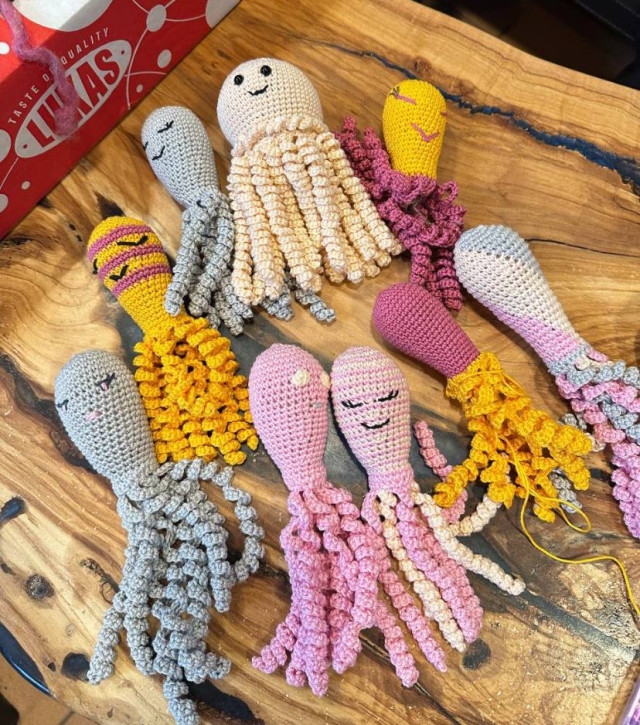 «Ми їх вчимо, релаксуємо, ровантажуємося, – пояснює Олена Ярошук. – Хочемо, щоб наш простір відвідували успішні жінки, щоб розповіли про свій шлях у бізнесі, також обдумуємо програму майстеркласів для дітей із особливими потребами».Майстрині з «Рукодвійок» також долучилися до благодійної акції «Восьминіжки» – це ініціатива, що діє в багатьох країнах світу. Жінки виготовляють м’які іграшки для дочасно народжених дітей у Волинському перинатальному центрі. Восьминіжок плетуть із якісних бавовняних ниток і натуральних наповнювачів – щупальця іграшок нагадують немовлятам пуповину, що заспокоює їх та створює відчуття безпеки.