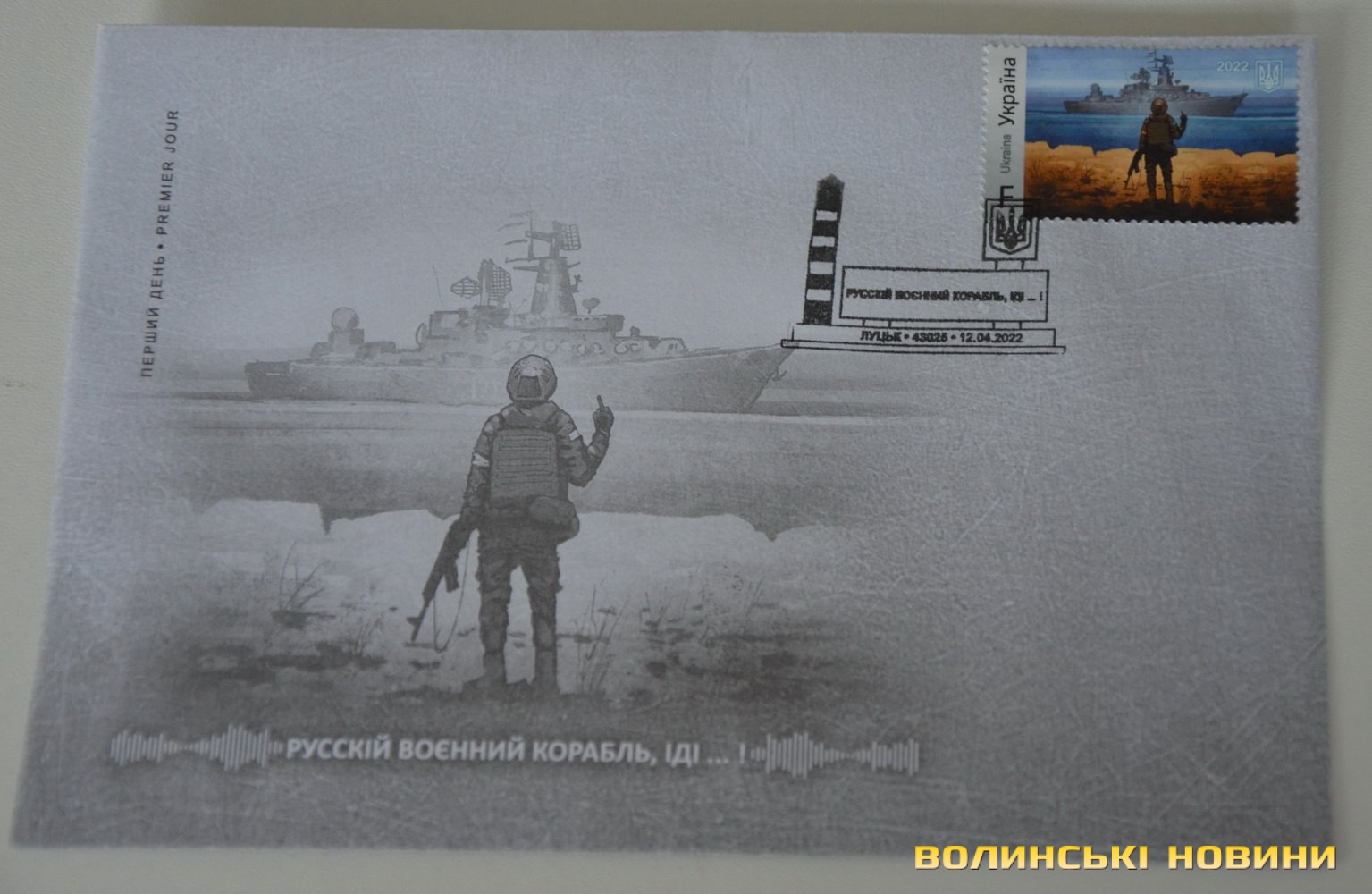 «Русскій воєнний корабль, іді..!» У Луцьку вперше в умовах воєнного стану ввели в обіг поштову марку. Фото
