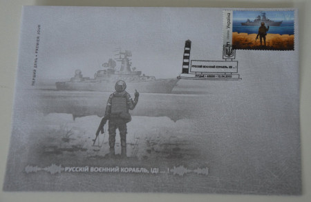 Додав, що «Укрпошта» припинила співпрацю з поштами країн-агресорів, тому нові конверт і марку можна відправити в будь-яку країну світу, крім Росії та Білорусі.Голова Волинської обласної ради Григорій Недопад, який завітав у головне відділення зв’язку «Укрпошти» на спецпогашення, відзначив: фраза, яка не сходить з уст українців із перших днів війни, символізує нашу позицію відносно країни-агресора, і відтепер вона відображена ще й на поштовій марці та конверті.«Русскій воєнний корабль, іді..!» – відповідь українських прикордонників, захисників острова Зміїний, російському кораблю на пропозицію здатися в полон у перший день вторгнення Росії на територію суверенної України, 24 лютого 2022 року.