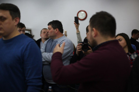 На цьому активіст не вгамувався і пішов до виходу із сесійної зали, де стояла працівниця муніципальної варти. Він почав її шарпати за руки й грубіянити, будучи незадоволений тим, що вона тут знаходиться.