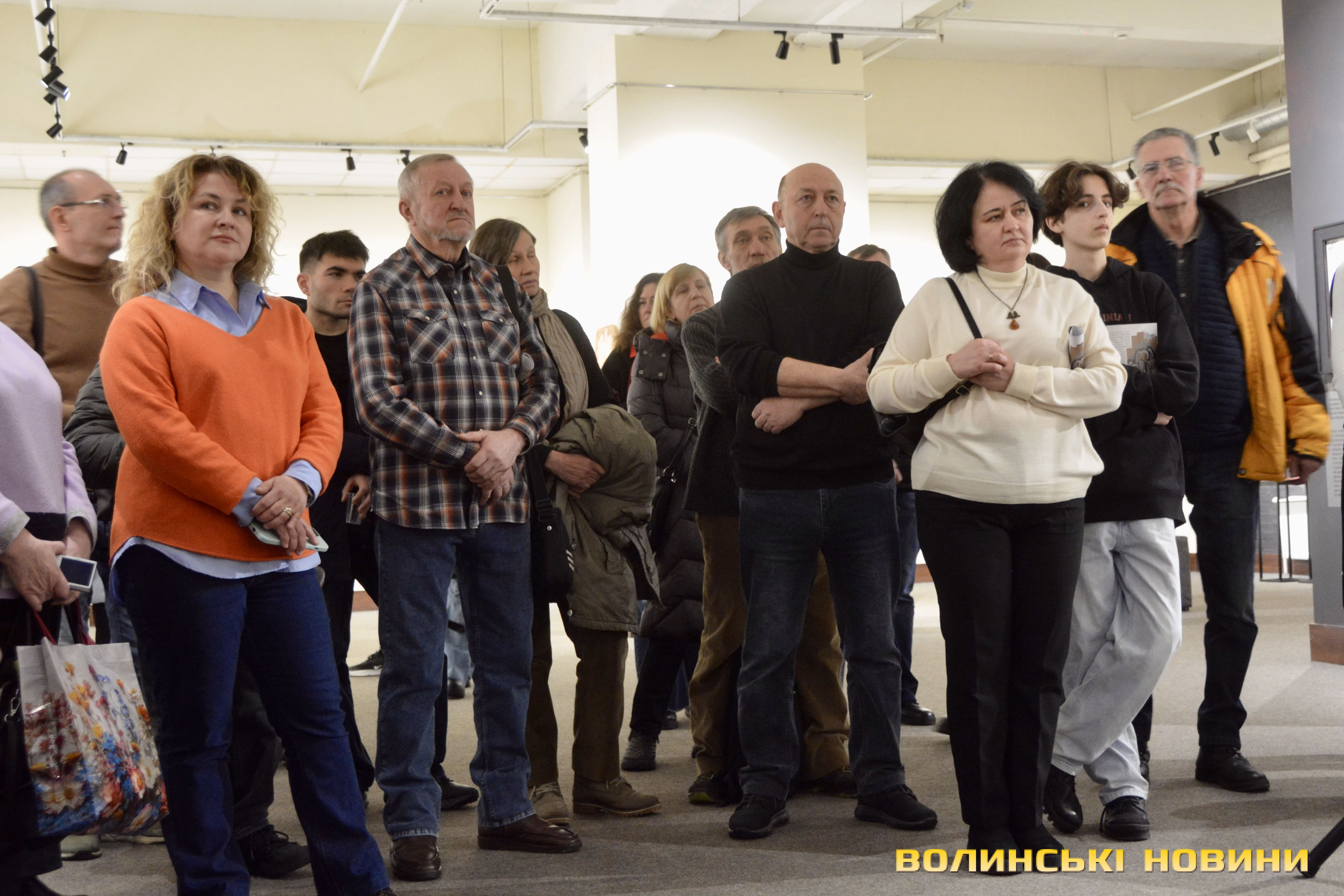 Як він інформував, на виставці в Луцьку представлені твори трьох митців, які зараз захищають нас на фронті. Це Святослав Владика, Олександр Бриндіков і Роман Барабах.