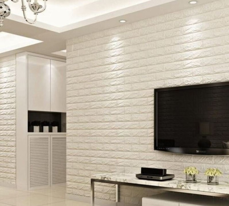 1. Для створення мінімалістичного стилю використовуйте білі або світлі самоклейні панелі з цегляним візерунком.