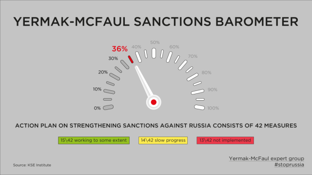 Наразі виконано 36% плану дій групи Макфола-Єрмака щодо посилення санкцій проти російської федерації.