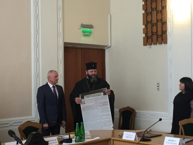 Митрополит Луцький і Волинський Михаїл вручив голові Волинської ОДА Олександру Савченку копію Томосу про автокефалію України.