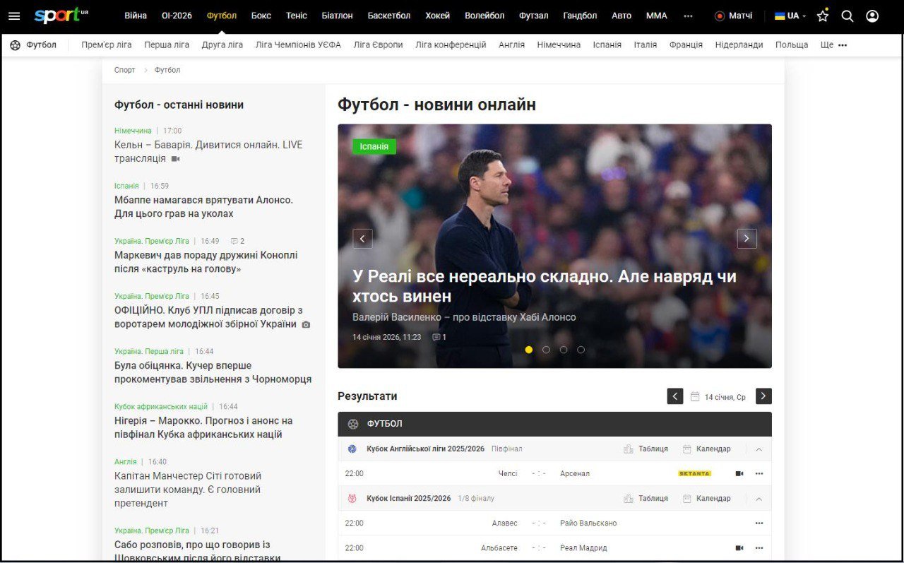 Сайт Sport.UA – новини, трансляції, статистика, розваги