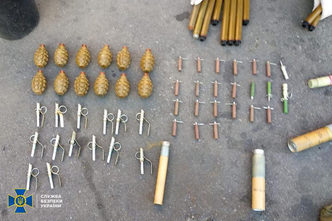 Під час огляду його транспортного засобу правоохоронці виявили: 14 бойових гранат Ф-1 та РГД із запалами до них, 25 підривників, 2 автомати Калашникова АК-74, 24 постріли до підствольного гранатомета, 14 сигнальних ракет, понад 3 тисячі набоїв різного калібру.