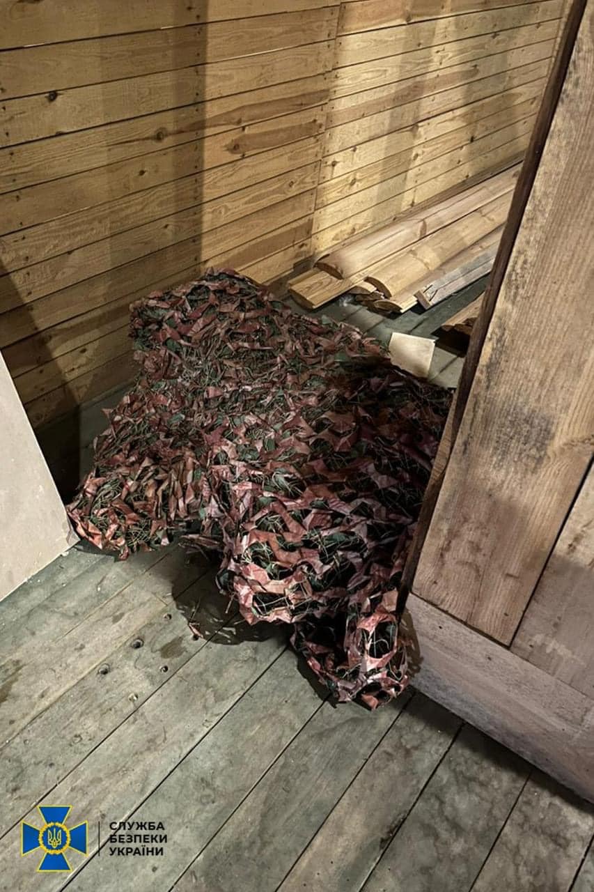 На горищі цього ж обʼєкта співробітники СБУ виявили маскувальну сітку, яка зазвичай використовується у військових цілях: для маскування озброєння, техніки та інженерних споруд.