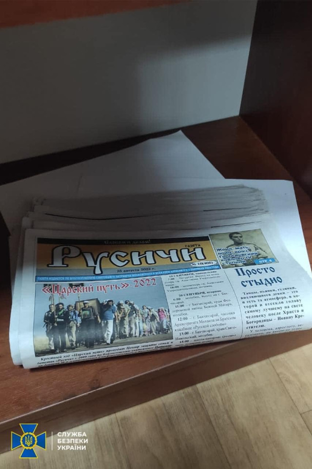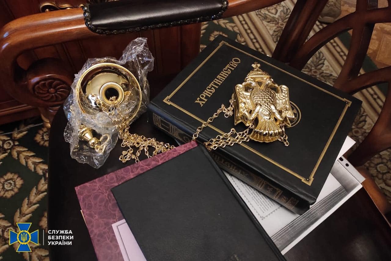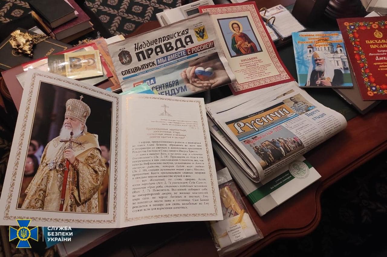 СБУ виявила підозрілих осіб, зброю, золотий російський герб і агітки на об'єктах УПЦ
