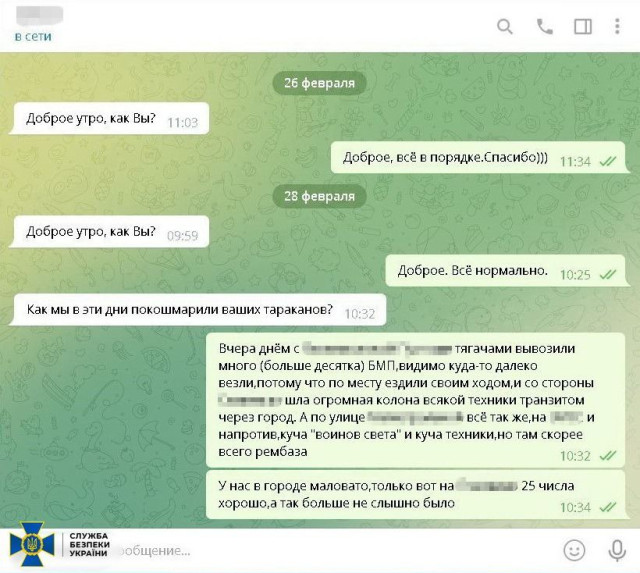 Встановлено, що вербування агенток він здійснював через представника розвідувального підрозділу 1-го армійського корпусу південного військового округу зс рф, до складу якого входить син однієї з фігуранток.