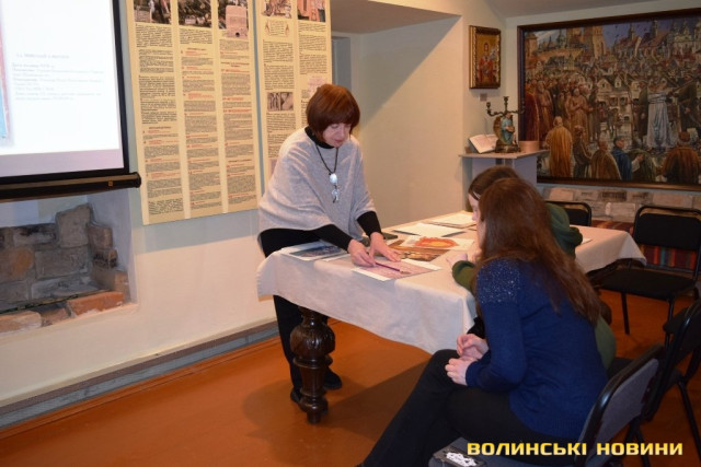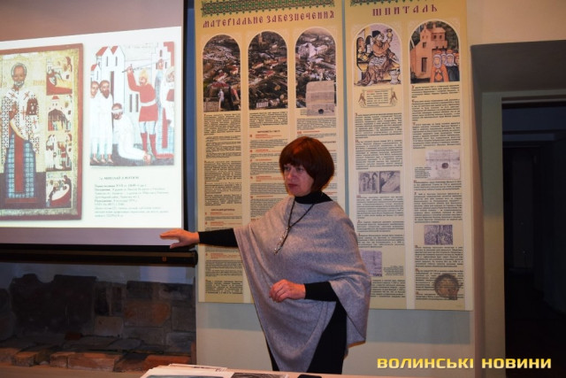 Науковиця Волинського краєзнавчого музею, завідувачка Музею Луцького братства Олена Бірюліна розповіла зацікавленим гостям про події ХІІІ століття, зокрема про відому з так званого Галицько-Волинського літопису за Іпатіївським списком облогу древнього Лучеська військами татарського воєводи Куремси.