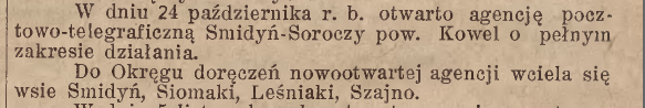 Оголошення в газеті «Dziennik wojewodski» 1929 року про відкриття поштового віддлення в селі Смідин, яке діяло і в Шайно