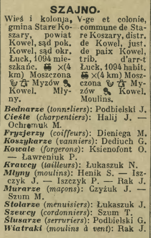 Після 1921 року Західна Україна опинилася під владою Польщі. Станом на 1923 рік село складалося з 246 дворів, де проживало 942 людини. У колонії Шайно був 31 двір, де жило 152 людини.Шайно в адресній книзі 1929 року