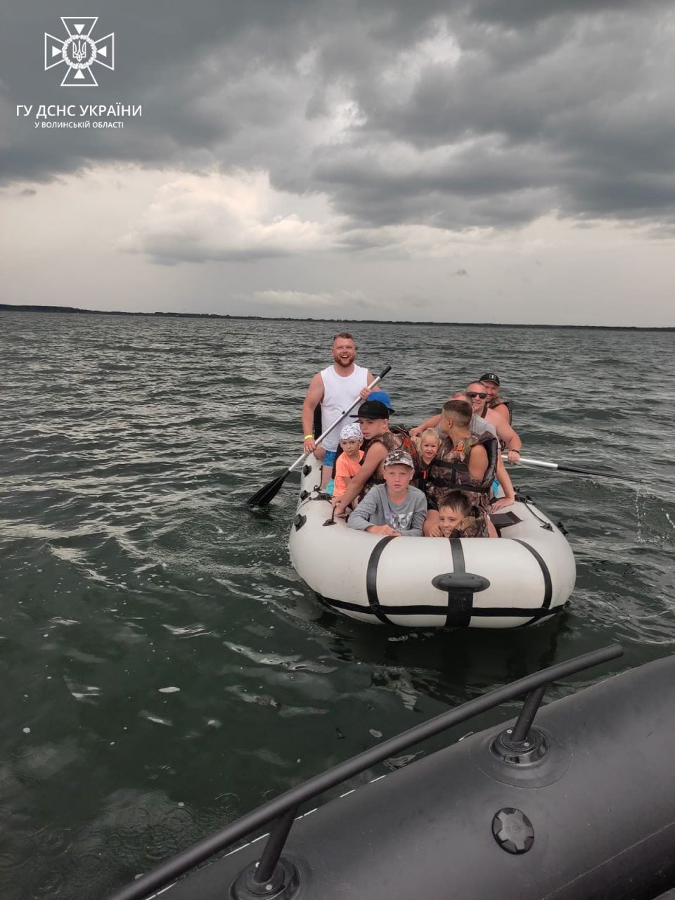 26 липня о 16:58 на лінію 112 надійшло прохання про допомогу від чоловіка, який разом з 13 людьми, серед яких 7 – діти, перебував у надувному човні на озері Світязь, повідомили у ГУ ДСНС України у Волинській області.