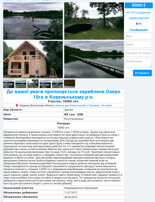 Аби довідатись деталі придбання волинського озера, журналісти «Сили правди» зателефонували за номером в оголошенні і представились потенційними покупцями.