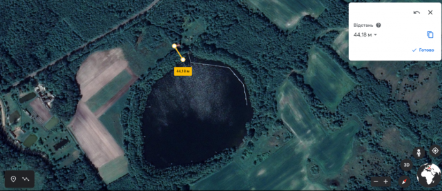 Згідно з даними Публічної кадастрової карти, земля під водоймою комунальна, сільськогосподарського призначення. А ось продавці стверджують, що ділянка рекреаційного призначення приваблива для бізнесу або ж будівництва бази відпочинку. Більше того, схоже, хтось уже спокусився і побудував тут щось на зразок котеджу.
