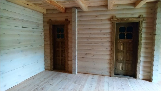 «На ділянці побудований двоповерховий будинок із бруса на сваях. Дах металочерепиця, фарби використовували фінські, столярка декорована з ковкою ручної роботи. Будинок повністю новий, укомплектований усім необхідним, побутовою технікою, меблями», – йдеться в оголошенні.Будинок на березі озера Грушівське. Фото, надане продавцем нерухомості Віктором Слободянюком