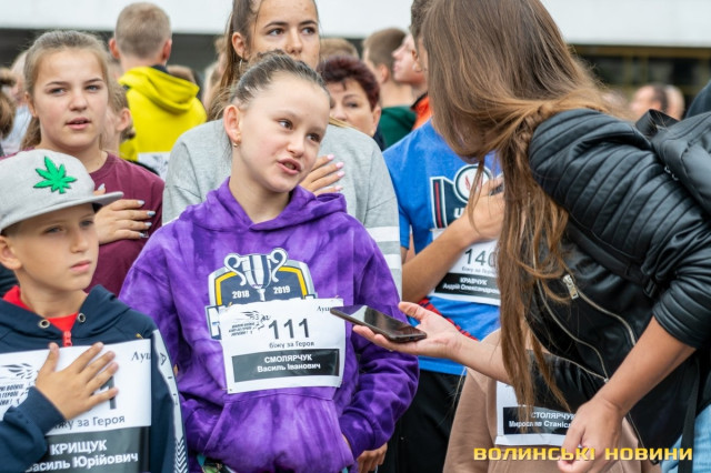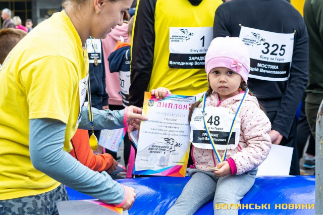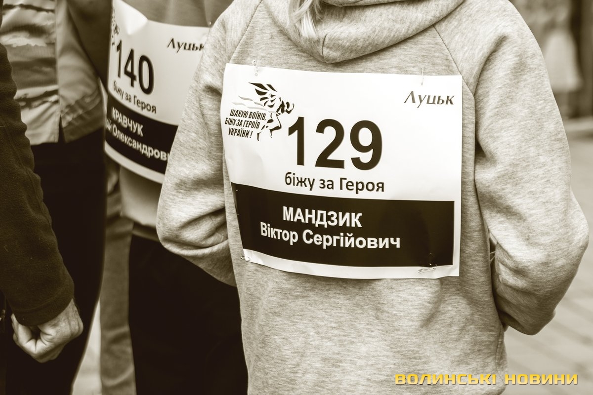 Учасник бігли дистанцію 1,2 кілометра за маршрутом: Театральний майдан - проспект Волі - перехрестя на вулиці Шопена та проспекту Волі –Театральний майдан.«Мета забігу – патріотичне виховання. Наші учасники біжать під номерами і під іменами загиблих на війні Героїв, аби вшанувати їхню пам’ять і великий подвиг перед Україною», - зазначив начальник управління у справах молоді та спорту Волинської облдержадміністрації Ігор Дмитришин.