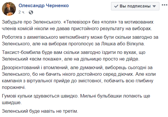 Забудьте про Зеленського. «Телевізор» без «поля» і мотивованих членів комісій ніколи не давав пристойного результату на виборах.