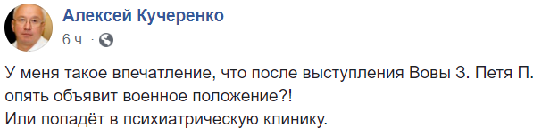 «У мене таке враження, що після виступу Вови З. Петя П. знову оголосить воєнний стан ?!