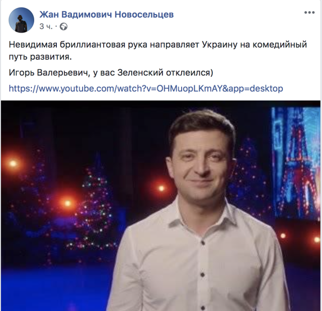 «Невидима діамантова рука направляє Україну на комедійний шлях розвитку. Ігоре Валерійовичу, у вас Зеленський відклеївся», – пише журналіст Жан Новосельцев.«Найважливіший момент в симуляторі Зеленського – його інтегрованість в систему русофобської і взагалі людиноненависницької влади в Україні. Адже питання не тільки в його ляльководі Коломойському, який публічно пишається своєю причетністю до подій 2 травня, але готовий їх повторити, причому явно по всій Україні», – пише для сайту «Політнавігатор» політолог Олег Хавич.