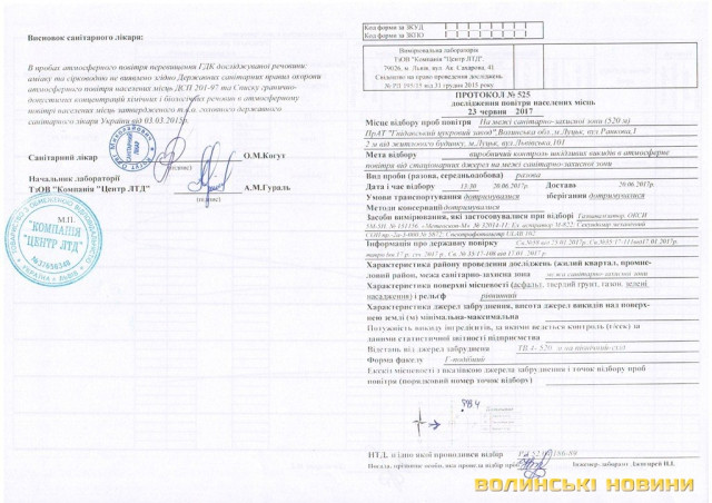 Нагадаємо, що громадські активісти повідомляли про значно перевищені норми аміаку і сірководню в повітрі поблизу Гнідавського цукрового заводу, що нібито стало причиною підвищення рівня захворюваності серед населення, однак як виявилось, інформація наразі не відповідає дійсності.