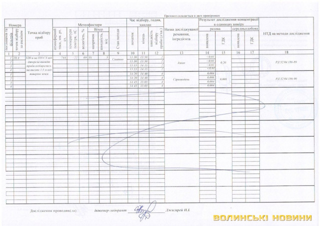 Нещодавно представники Компанії «Центр ЛТД» зробили заміри на межі санітарно-захисної зони біля Гнідавського цукрового заводу, аби проконтролювати кількість шкідливих викидів в атмосферне повітря, зокрема, рівню аміаку та сірководню. Саме ці речовини є хімічними складниками смороду і при перевищенні норми можуть впливати на погіршення стану здоров’я. При гранично допустимій концентрації аміаку 0,2, максимальний показник, який виявили при дослідженні у Луцьку – 0,17. Такий рівень зафіксували вранці – у проміжку від 8.00 до 8.25. В обідню пору показник опустився до 0,01. Згідно із державними нормами, допустимий рівень сірководню – 0,08. Аналізи в середньому показали 0,04, максимально – 0,06. «В пробах атмосферного повітря перевищення гранично допустимої концентрації досліджуваної речовини: аміаку та сірководню не виявлено згідно Державних санітарних правил охорони атмосферного повітря населених місць», – йдеться у висновку за підписом санітарного лікаря Олександра Когута.