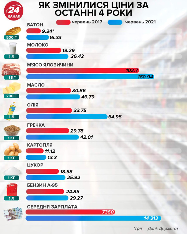 Ціни на продукти та послуги в Україні весь час зростають внаслідок інфляції. Фінанси 24 порівняли, що можна було купити чотири роки тому, маючи в кишені 50 гривень, а що на ці гроші можна дозволити собі сьогодні.