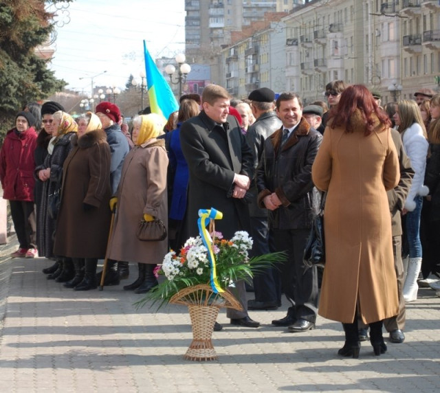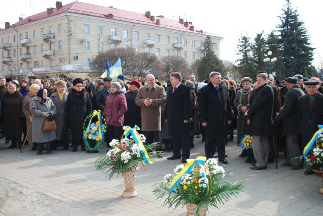 Першими, як зазвичай, корзину з квітами до підніжжя пам’ятника поклали перші чиновники області. Потім, відповідно до субординації, шану Шевченкові віддали інші посадовці Луцька.