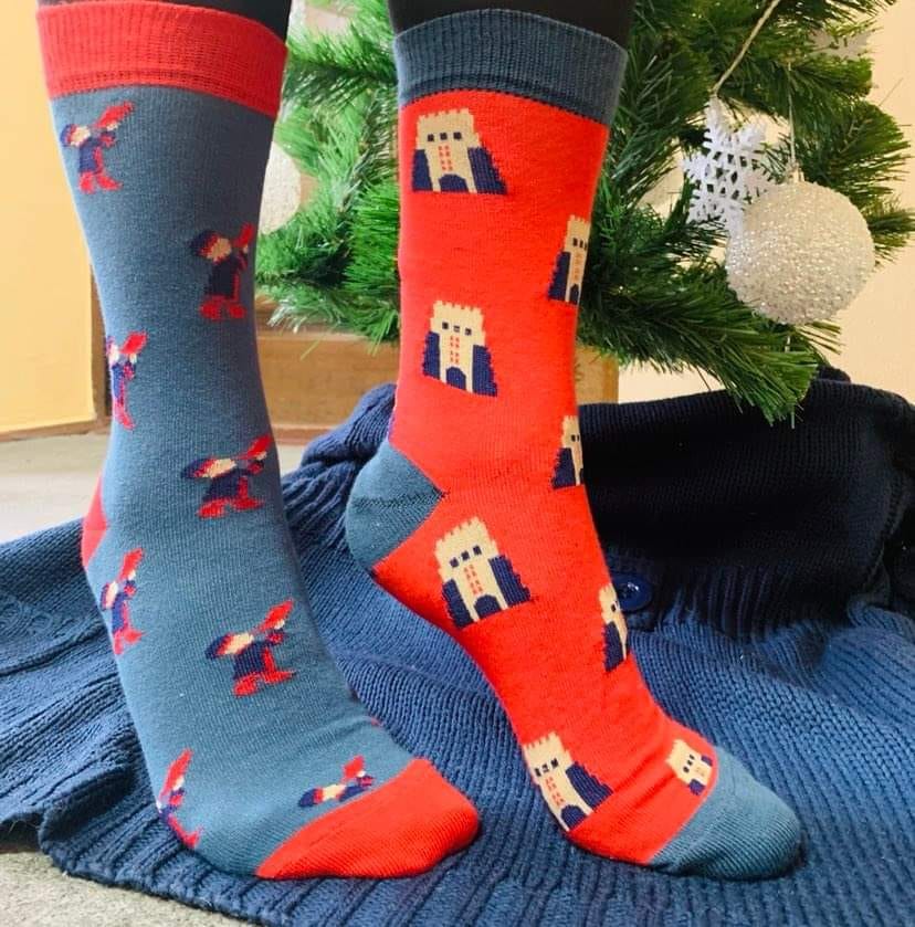 Першими в продаж надійдуть веселі шкарпетки з зображеннями В’їзної вежі Луцького замку та кликуна.