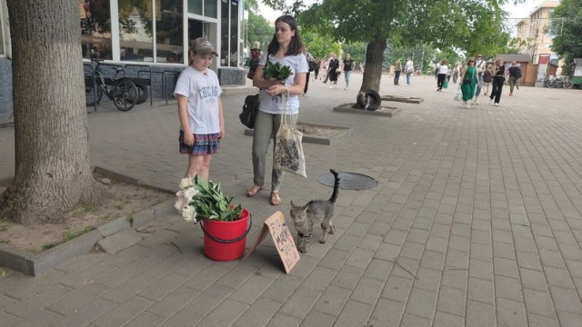 «Може, хтось соромиться вийти і продавати. Мені, чесно, не соромно. Я не знаю, як це сказати. Мені кльово, що я допомагаю. Сталої ціни на квіти немає – це ж донат», – каже дівчинка.