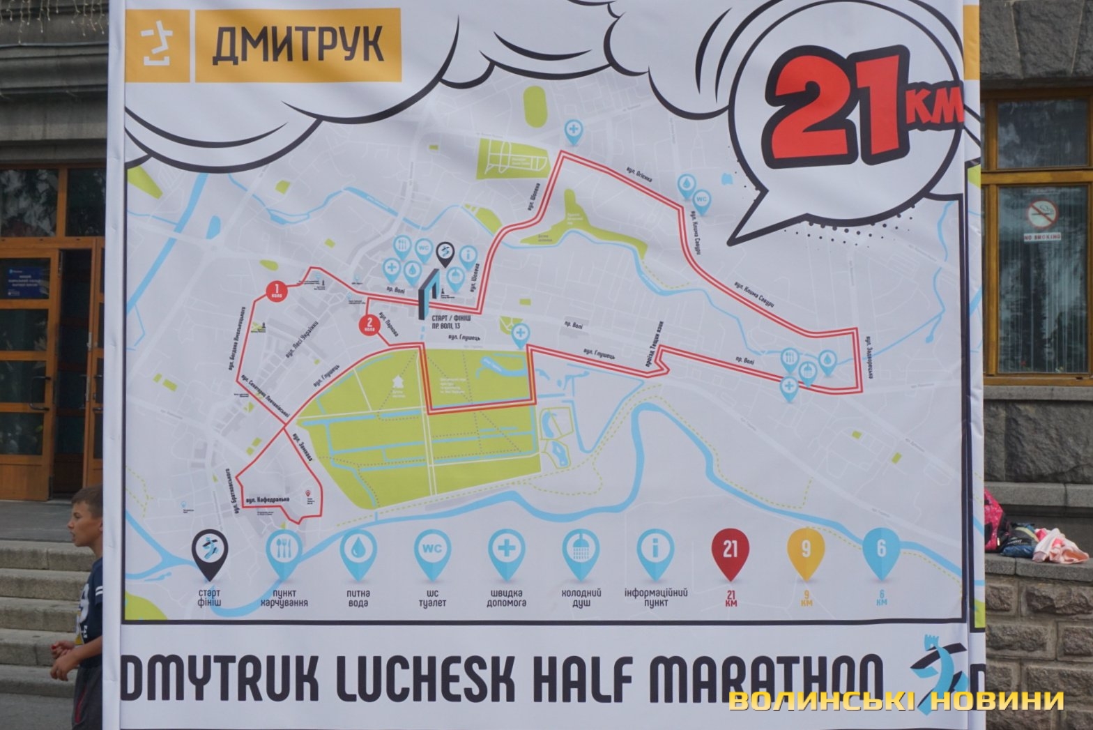На найдовшому шляху (21 кілометр) третім прибіг Андрій Лапко з Івано-Франківська (1:14:52), другим — лучанин Григорій Хомич (1:13:26), а першим уже згаданий лучанин Сергій Оксенюк (1:10:51). До слова, він втретє переміг на луцькому півмарафоні.