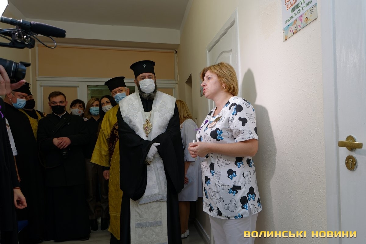 У гості до медиків завітали митрополит Луцький та Волинський Михаїл, священники Свято-Троїцького кафедрального собору, заступниця керуючого справами, керівниця відділу з питань управління об’єктами спільної власності територіальних громад сіл, селищ, міст області та землями комунальної власності виконавчого апарату Волинської обласної ради Мирослава Якимчук, заступниця голови правління Фонду Ігоря Палиці «Тільки разом» Катерина Шкльода.У медзакладі зазначають, що їм хотілося б влаштувати масштабніший захід, але, зважаючи на карантинні обмеження, поки що мусили обмежитися невеликою кількістю гостей.