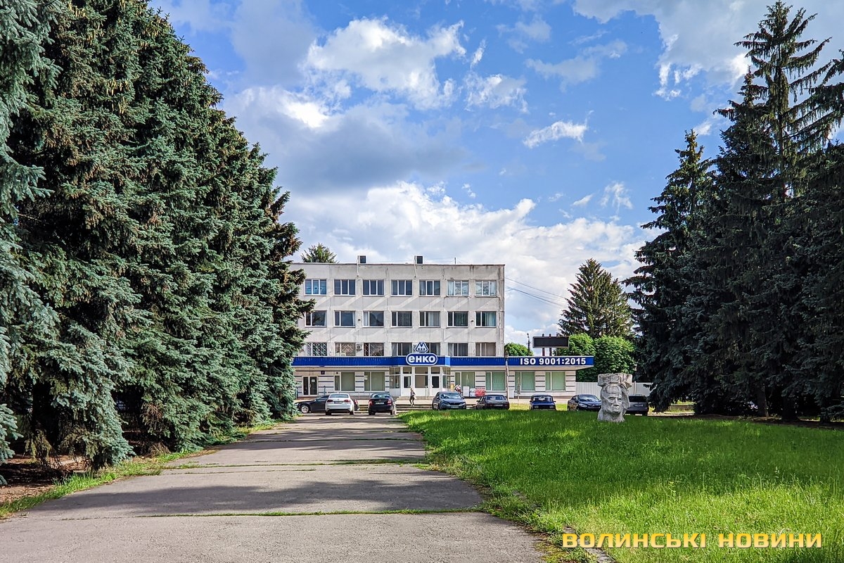ХлібзаводХоча підприємство запрацювало пізніше, проте його також зобразили на панно. Підказкою стала інформація відомого луцького краєзнавця Вальдемара Пясецького про те, що в перших планах забудови міста вулиця Артема (нині проспект Перемоги) пролягала аж до Теремна. Власне, там і зображений завод. Хоча нинішня назва вулиці – Соборності – спочатку збила з пантелику. Вочевидь, хлібозавод внесли на панно, як нове велике підприємство, що вже було у планах.