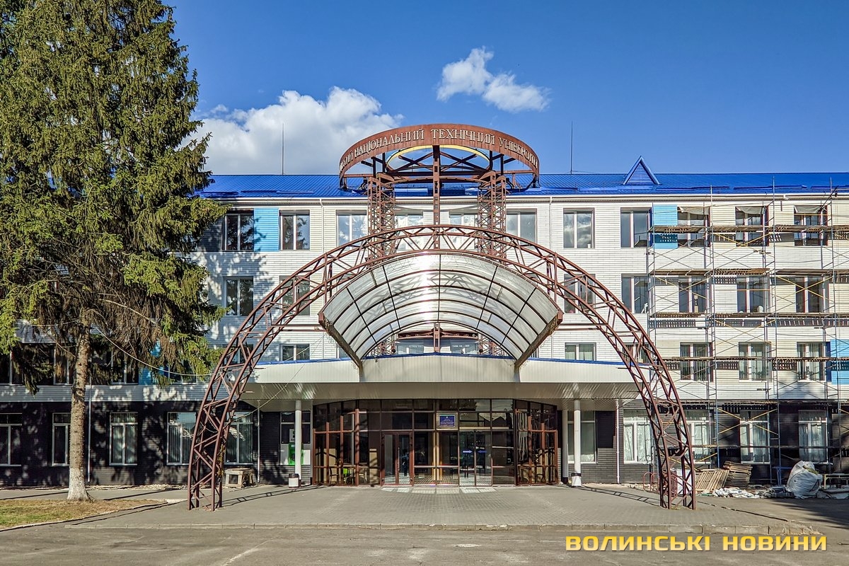 ТехнічнийУ 1968 році відділення загальнотехнічного факультету Київського автодорожного інституту, яке було у Володимирі-Волинському, перетворили у Луцький загальнотехнічний факультет. У 1975 році його реорганізовують у Луцький філіал Львівського ордена Леніна політехнічного інституту імені Ленінського комсомолу. Цей виш було представлено на панно саме таким, що відповідає за підготовку кадрів для промисловості. У роки незалежності на його базі створили Луцький національний технічний університет.