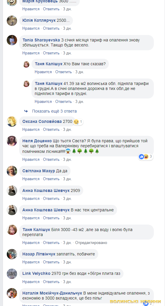 Чому це так, ДКП «Луцьктепло» пояснило на офіційному сайті. Зокрема, у інформації йдеться, що 80% структури тарифу на теплову енергію складають енергоносії: електрика та газ. Ціна на електроенергію зросла на 10%, а газ для населення подорожчав на 22,8%. Крім того, в структуру тарифу внесли і зростання мінімальної заробітної плати для працівників. Як наслідок за опалення в грудні ДКП «Луцьктепло» нарахувало плату за централізоване опалення в розмірі 41,14 гривень за квадратний метр. І це ще, на жаль, не межа. У січні ця сума, найімовірніше, буде ще більшою.