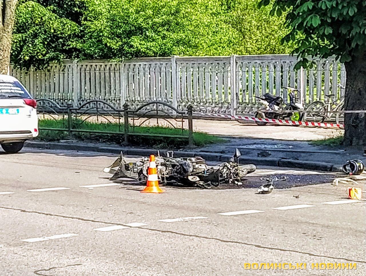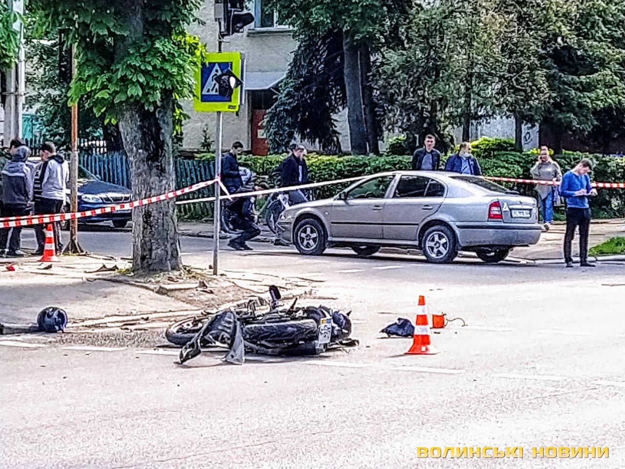 Водій мотоциклу, який у Луцьку на Перемоги врізався у легковик Skoda, за кермом якого перебувала працівниця міськвідділу, знаходиться в лікарні.